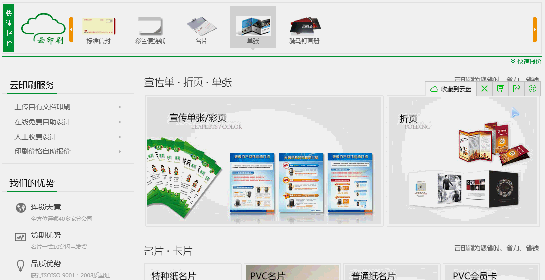 在首页的“快速报价”可以对云印刷的现有商品进行价格的快速查询,请看动图演示: